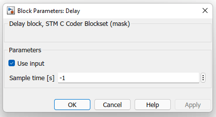 - Sample time [s] – period of function refreshing it isn’t ADC conversion time (-1 means that a particular block takes sample time from its input block or if it doesn’t have any input block it takes the fastest sample time in a model)