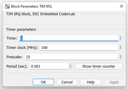 • Timer clock (MHz) – timer base clock