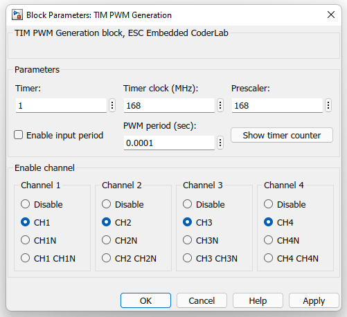 This block supports PWM signal generation by Timer peripheral on STM microcontrollers.